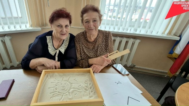 В рамках национального проекта "Семья", в отделении дневного пребывания, прошло развивающее занятие «Песочная терапия». Получатели социальных услуг на оборудованном столе рисовали песком различные картины. Работа с песком дает участникам возможность раскрыть свой талант, развивает ловкость и способность контролировать движения, позволяет улучшить внимание, а также способствует развитию мелкой моторики и тактильной чувствительности.